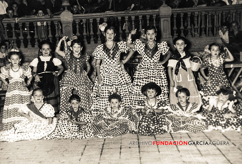 Niñas de flamenca en la Feria de Agosto de Coín de 1955.