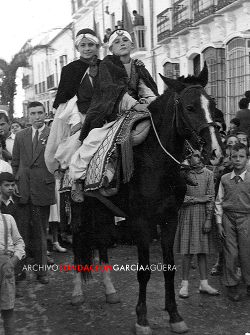 Pajes de los Reyes Magos durante la cabalgata de 1956 en Coín.