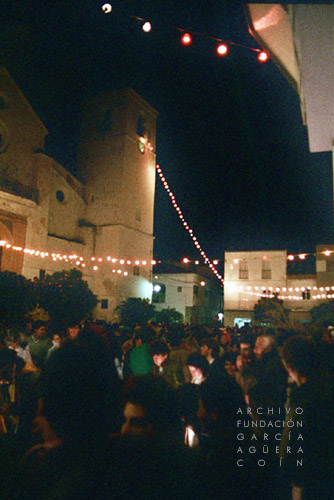 La Nochevieja ya se venía festejando con disfraces desde años antes en entornos más íntimos y familiares. Luego, la gente fue saliendo a la calle para coin-cidir de manera espontánea frente al reloj de la plaza Bermúdez de la Rubia antes de las campanadas. Y aquella costumbre se viene repitiendo incansablemente hasta hoy como un ritual que convierte esa noche coineña en imaginación, color y alegría. Esta colección fotográfica recoge la Nochevieja en que por primera vez se iluminó la plaza. Unas imágenes aderezadas con el sabor granulado de los ochenta, que dejan constancia de los inicios de una de las celebraciones más populares y multitudinarias del calendario festivo de Coín y sui generis de esta ciudad. Después, todo se ha hecho más grande y mejor.
