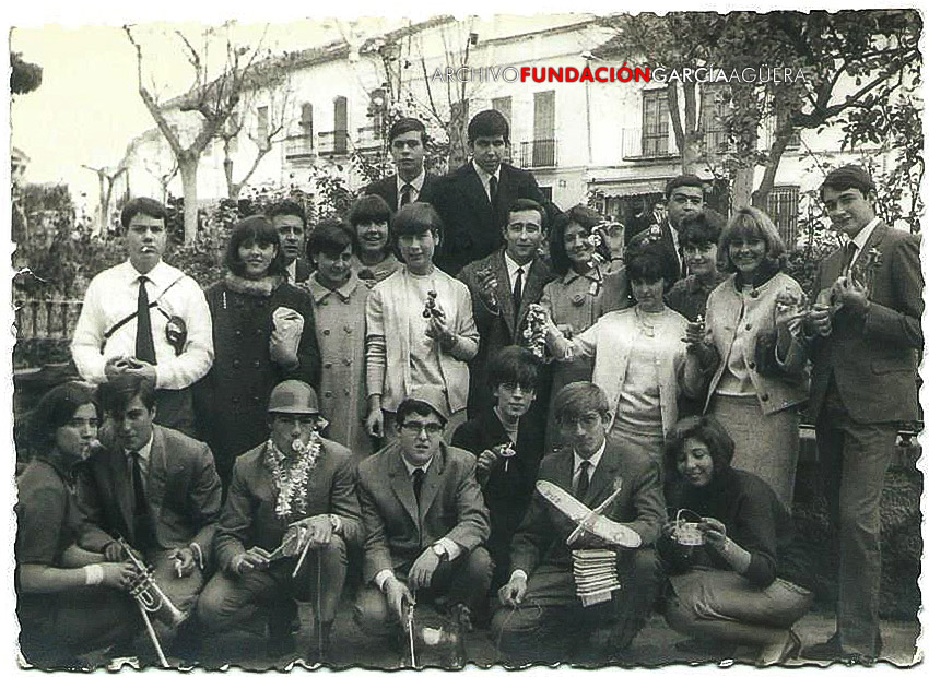 Pandilla de jóvenes coineños la mañana del Día de Reyes en la Alameda, hacia 1966.